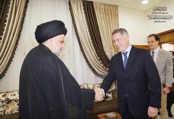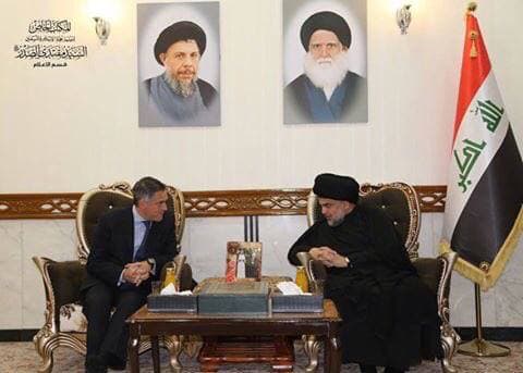 استقبل سماحة السيد القائد مقتدى الصدر "أعزه الله" سعادة سفير بعثة الاتحاد الاوربي في العراق باتريك سيمونيت حيث تناول الطرفان تفعيل دور الاتحاد الاوربي في القضايا الانسانية والاجتماعية والسلمية ، وكذلك تفعيل قضية المساعدات الاوربية لأهالي الموصل والمناطق الاخرى التي تشهد مواجهات ضد الجماعات التكفيرية و المصالحة الوطنية بين ابناء الشعب العراقي .